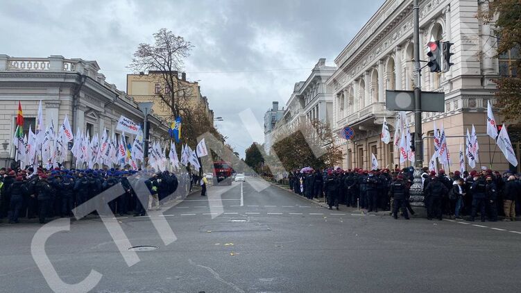 Тем временем протестующие у парламента ФОПы хотели перекрыть движение по улице Грушевского, однако силовики их оттеснили с проезжей части и заблокировали.