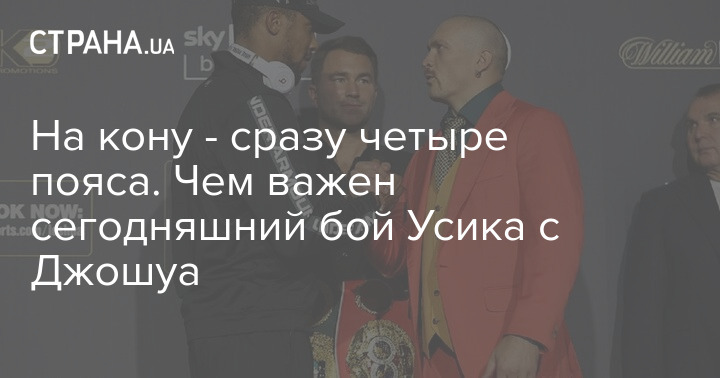 "Вечером 25 сентября, в субботу, состоится боксерский поединок за звание чемпиона по четырем престижным боксерским версиям между украинцем Александром Усиком и британцем Энтони Джошуа. Вокруг этого боя много не только спортивного, но и политического резонанса.