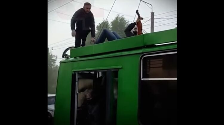 Полиция сняла с крыши троллейбуса в Харькове музыканта, который играл на скрипке. Видео