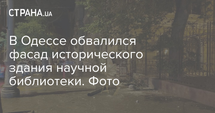 В ночь на субботу, 25 сентября, в центре Одессы обвалилась часть фасада Научной библиотеки ОНУ имени И. И. Мечникова. Это историческое здание, возведенное еще в XIX и перестроенное в XX веке.