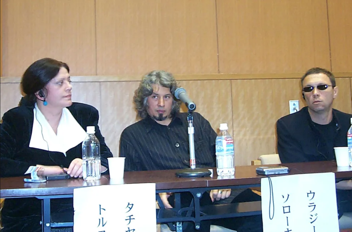 На снимке ТАСС Пелевин сидит за столом вместе с Татьяной Толстой и Владимиром Сорокиным