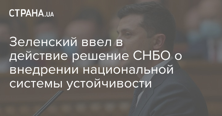 В сообщении президента Украины говорится о введении в действие решения Совета национальной безопасности и обороны Украины от 20 августа 2021 года "О внедрении национальной системы устойчивости.