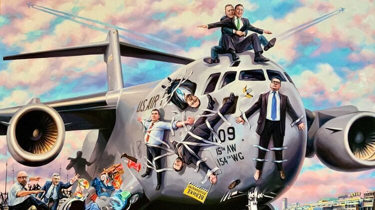 Заместитель главного редактора "Страны" Светлана Крюкова продала свою новую картину под названием "One way ticket", посвященную экстренно убегающему из Украины президенту Владимиру Зеленскому и его приближённых на американском самолёте.