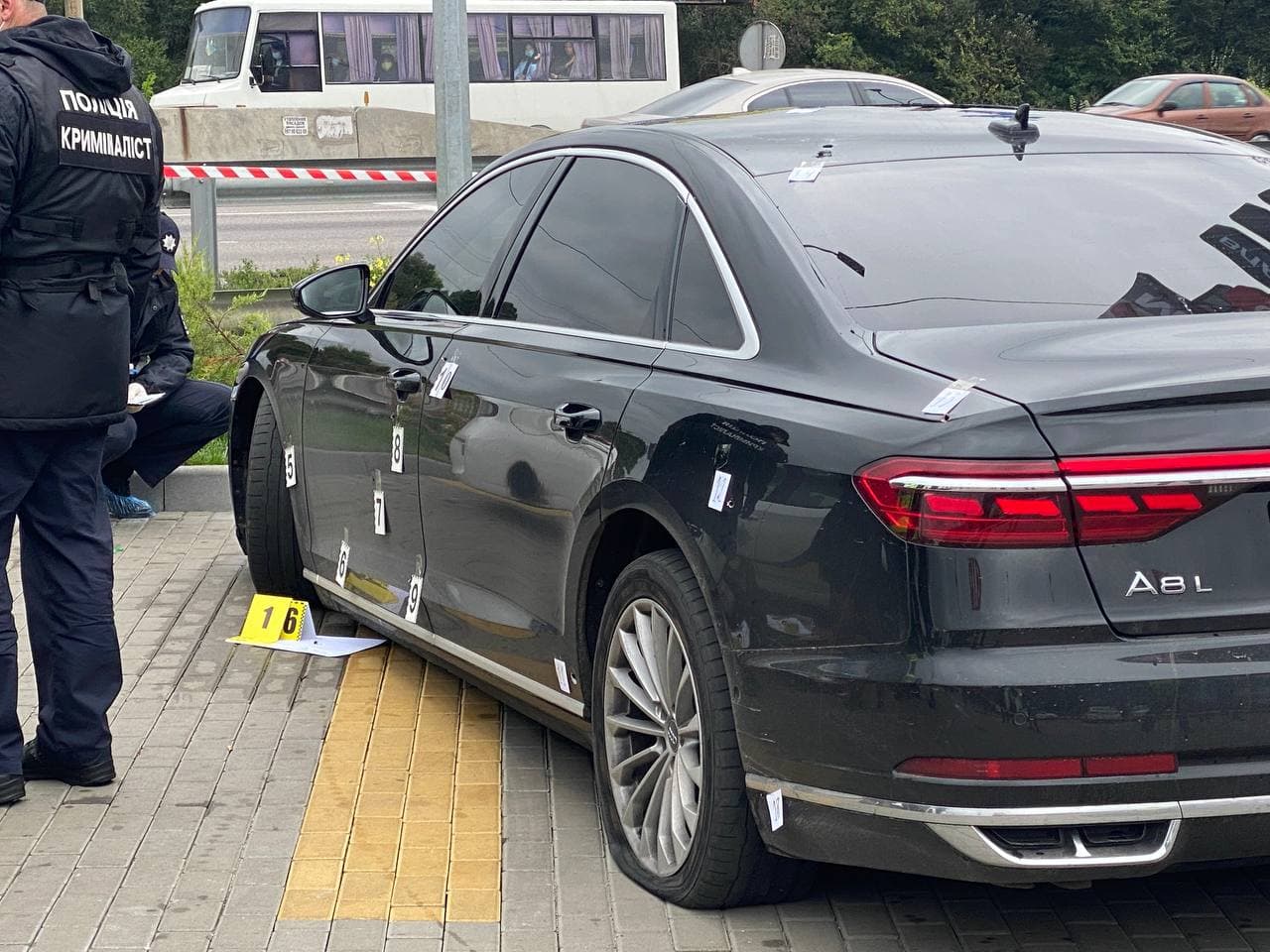 Утром этого дня на парковке магазина АТБ у села Лесники появился автомобиль Audi A8 со следами от пуль. Приехавшие на место журналисты успели заснять только саму машину, уже без пассажиров.