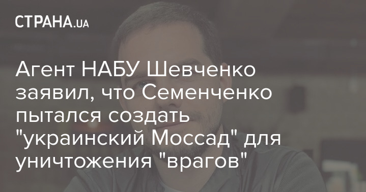 Агент Национального антикоррупционного бюро Украины Евгений Шевченко заявил, что подозреваемый в организации частной военной кампании экс-нардеп Семен Семенченко работал над созданием "украинского Моссада", цель которого - "уничтожение врагов Украины".