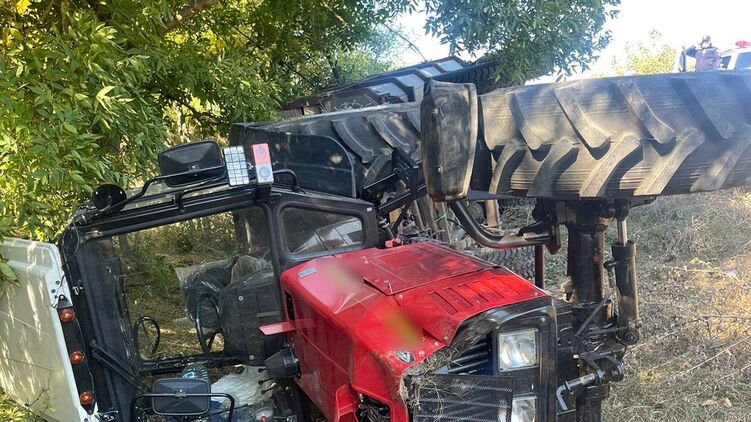 Трактор перевернулся на склоне. Фото: пресс-служба управления Национальной полиции Одесской области
