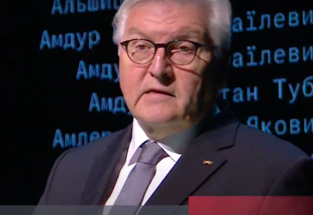 Следом выступил третий высокий гость - президент Германии Франк-Вальтер Штайнмайер. Он начал со стихотворения советского поэта Евгения Евтушенко "Бабий Яр" в переводе на немецкий. И также отметил, что в расстреле принимала участие полиция.