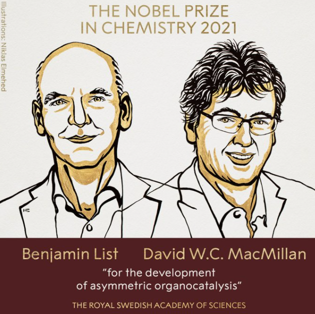 Награду по химии присудили Бенджамину Листу (Институт Макса Планка, Германия) и Дэвиду Макмиллану (Принстонский университет, США) "за развитие асимметричного органокатализа". Другими словами - за достижение при строительстве молекул.