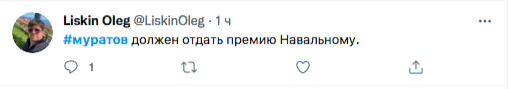 После того как Дмитрия Муратова назвали нобелевским лауреатом, российский сегмент Твиттера - точнее, его либеральная часть и сторонники Навального - стали эмоционально негодовать.