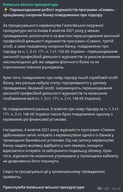 Вслед за главой "Укрэксимбанка" Евгением Мецгером, который получил еще одно подозрение в деле о препятствии работе журналистов "Схемы", начальнику охраны Мецгера - Игорю Тельбизову также выдали дополнительное подозрение.