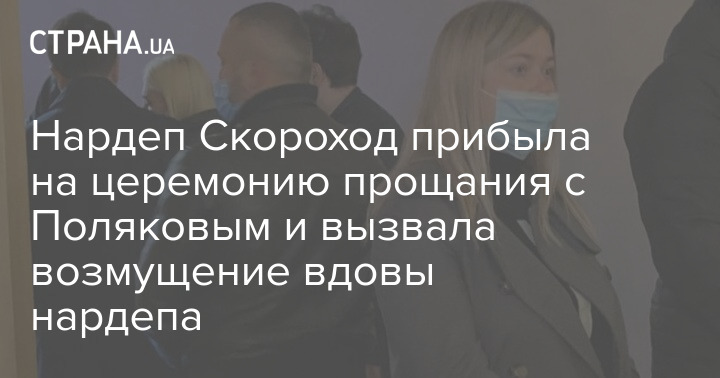 Когда Скороход зашла в зал, где установлен гроб, жена Полякова начала возмущаться. "Как ты посмела сюда прийти", - заявила вдова Полякова. Однако конфликт быстро утих, Скороход осталась в зале, но отошла в сторону.