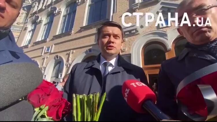 Разумков прибыл на церемонию прощания с Поляковым. Скриншот