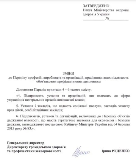 Министерство здравоохранения Украины предлагает расширить перечень лиц, которые подлежат обязательной вакцинации от коронавируса.