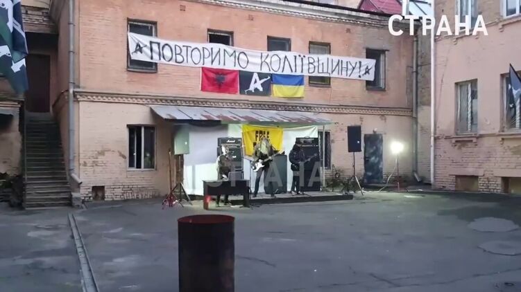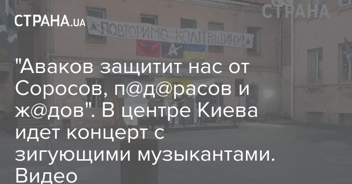 В самом центре Киева, на площадке во дворе дома по переулку Шевченко, 5, в день УПА, 14 октября, проходит "Ситуационный фестиваль". На нем выступила группа "Закрытое общество и его друзья". В одной из песен поется: "Арсен, ты Аваков, защитит нас от Соросов, мокшанцев, п@д@расов и ж@дов".