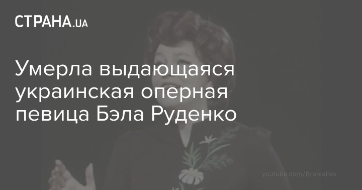 Украинская, российская и советская оперная певица Бэла Руденко, признанная народной артисткой СССР, умерла в возрасте 88 лет.