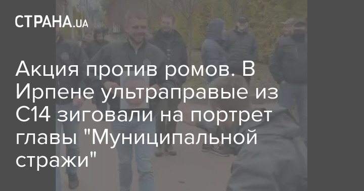 Акция против ромов. В Ирпене ультраправые из С14 зиговали на портрет главы "Муниципальной стражи"