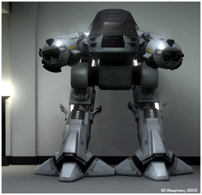 А модель танка имеет в высоту 2,5 метра. По конфигурации она чем-то напоминает боевого робота из серии фильмов "Робокоп" ЕD-209. На корпусе скульптуры дважды нанесены трезубец и пятиконечная звезда.