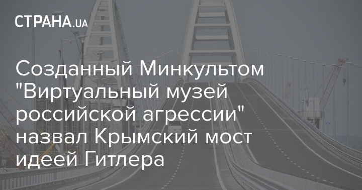 На сайте "Виртуального музея российской агрессии", созданного Министерством культуры Украины, строительство Россией Крымского моста назвали продолжением идей Гитлера.