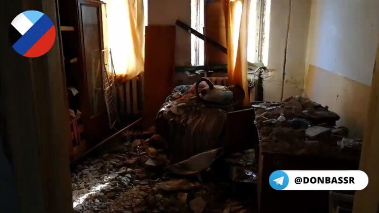 Попавший под обстрел дом на окраине Донецка. Скриншот с видео
