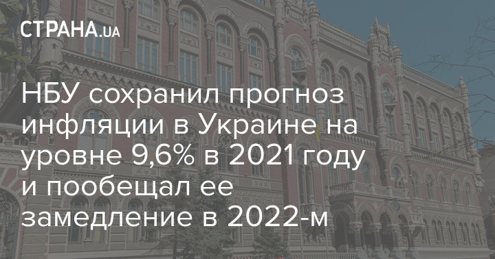 Нацбанк Украины сохранил прогноз инфляции на 2021 год на уровне 9,6% и ожидает ее возвращения к 5% к концу 2022 года.