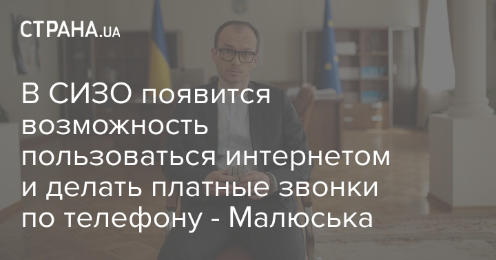 Министр юстиции Денис Малюська анонсирует введение платных услуг для заключённых в СИЗО - пользование телефоном и интернетом, но с ограничением контента.