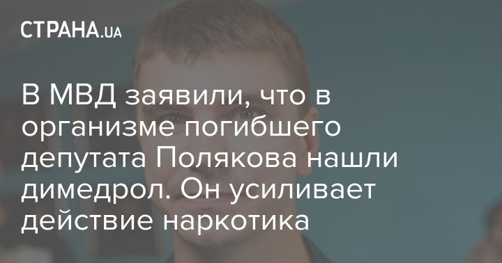 В МВД заявили, что в организме погибшего депутата Полякова нашли димедрол. Он усиливает действие наркотика
