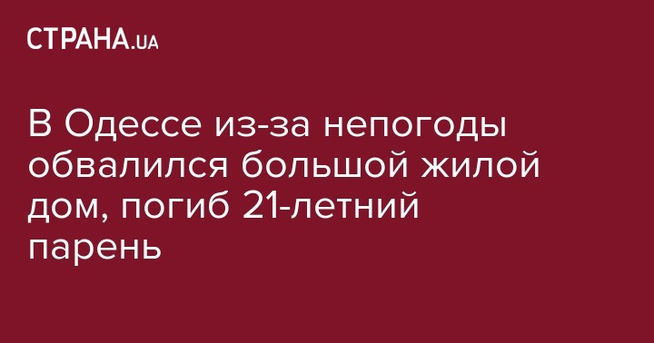 В Одессе из-за непогоды обвалился большой жилой дом, погиб 21-летний парень