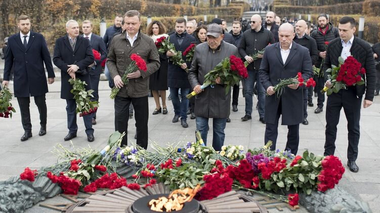 В четверг, 28 октября, в День освобождения Украины от фашистских захватчиковдепутаты Верховной Рады Украины и Киевского городского совета от ОПЗЖ вместе с ветеранами возложили цветы к Вечному огню на могиле Неизвестного солдата в парке Славы в Киеве.