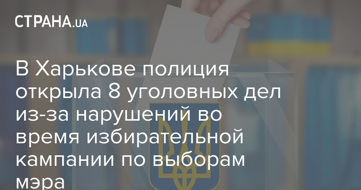 Харьковские правоохранители с начала кампании по внеочередным выборам мэра открыли 8 уголовных производств, связанных с избирательной кампанией. Всего к ним поступило 60 заявлений о нарушениях избирательного законодательства.