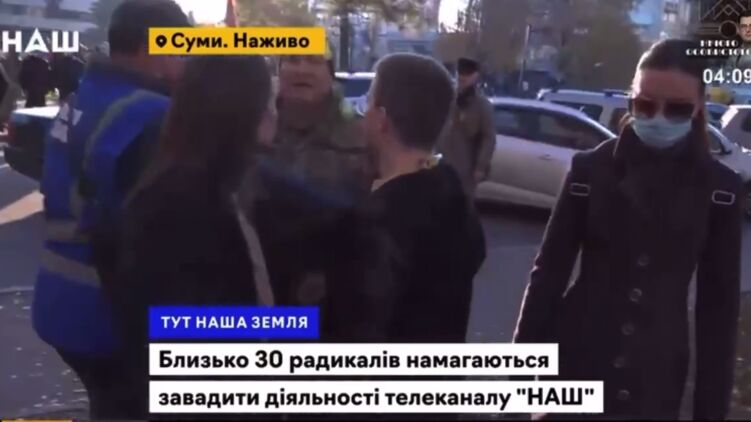 В субботу, 30 октября, в городе Суммы на площади напали на съемочную группу телеканала "НАШ".