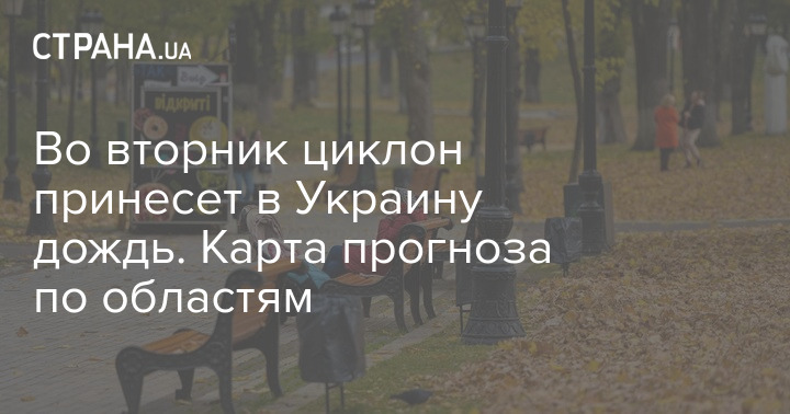 Во вторник циклон принесет в Украину дождь. Карта прогноза по областям