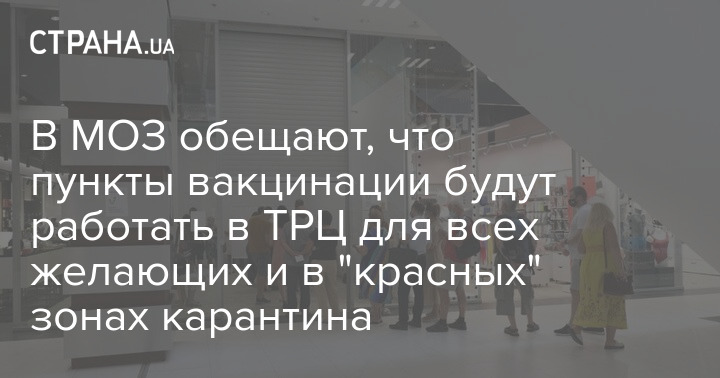 В МОЗ обещают, что пункты вакцинации будут работать в ТРЦ для всех желающих и в "красных" зонах карантина