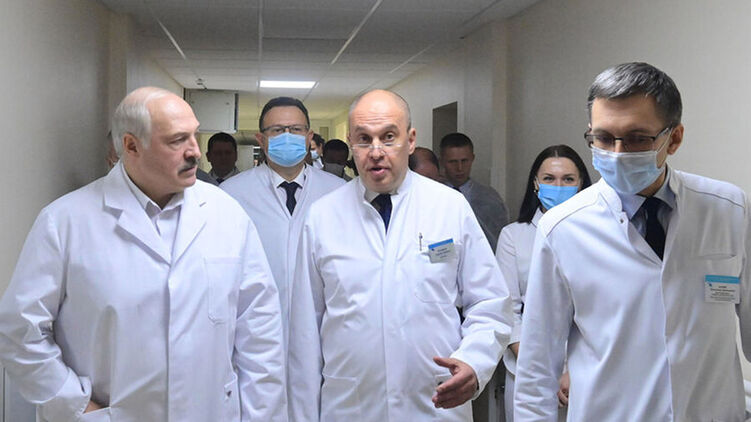 Кроме того, Лукашенко также побывал в палате выздоравливающих пациентов, с ними он общался со спущенной на подбородок маской.