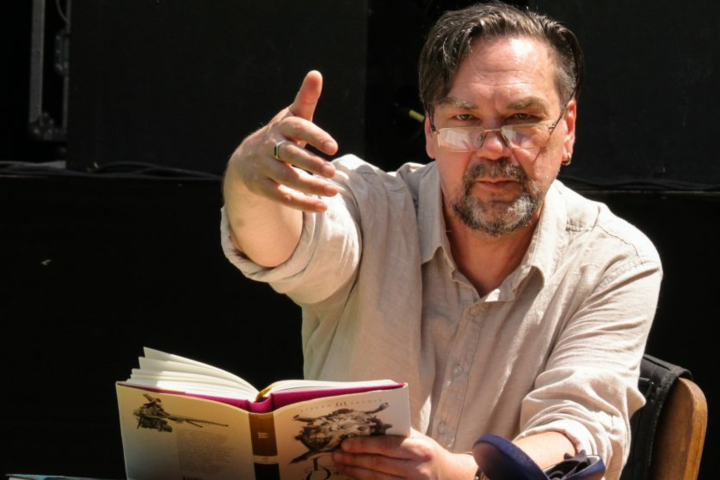 Текст национального диктанта читал Юрий Андрухович Фото: Укринформ