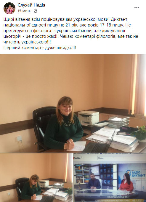 "Диктант национального единства пишу не 21 год, но лет 17-18 пишу. Не претендую на филолога украинского языка, но диктовка в этом году - это просто кошмар! Читаю комментарии филологов, но так не читают на украинском! Первый комментарий - очень быстро!" - поделилась впечатлениями Надежда Слухай.