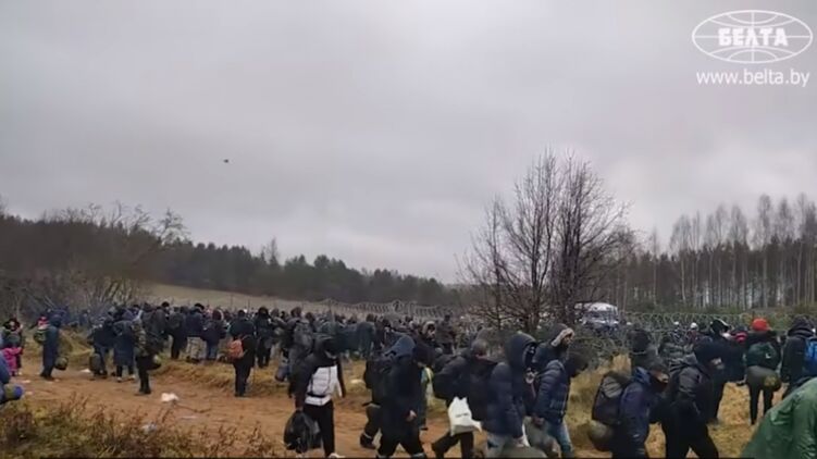 В понедельник, 8 ноября, огромная колонна беженцев шла вдоль трассы по территории Беларуси к границе с Польшей, которая в ближайшее время планирует построить пятиметровый стальной забор для защиты от нелегальных мигрантов.