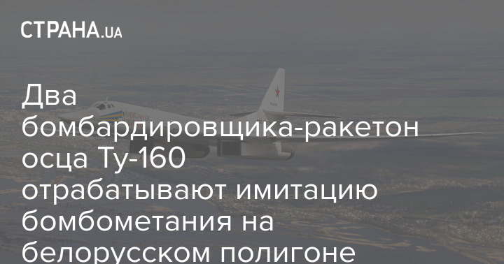 Два сверхзвуковых стратегических бомбардировщика-ракетоносца Ту-160, способные нести ядерное оружие, отрабатывают имитацию бомбометания на авиационном полигоне "Ружанский" в Беларуси.