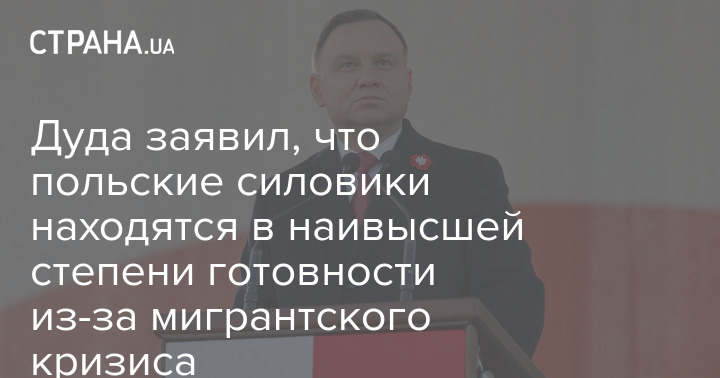 Президент Польши Анджей Дуда заявил, что силовики страны находятся в наивысшей степени готовности в связи с кризисом на границе с Беларусью.