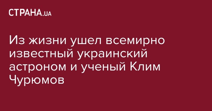 Сегодня в субботу, 15 октября, ушел из жизни на 80-м году всемирно известный украинский ученый, астроном и исследователь комет, член-корреспондент Национальной академии наук Украины Клим Чурюмов. Об этом рассказала заместитель директора Киевского планетария Елена Дирдовская, сообщает Интерфакс.