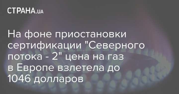 На фоне сообщений о приостановке Германией сертификации российского газопровода "Северного потока-2", во вторник, 16 ноября, впервые за три недели спотовая цена на газ в Европе выросла до 1046 долларов за тысячу кубических метров.