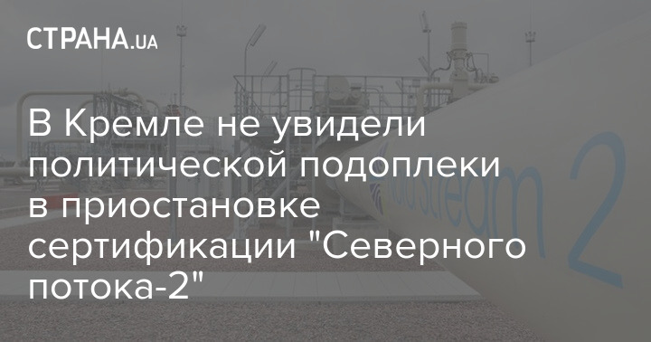 Пресс-секретарь президента Российской Федерации Дмитрий Песков сообщил о том, что в Кремле не видят политической подоплеки в приостановке в Германией сертификации "Северного потока-2".
