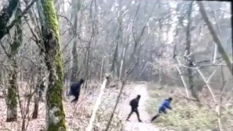 На кадрах видно, как четыре человека идут через лес, а после их задерживают правоохранители.