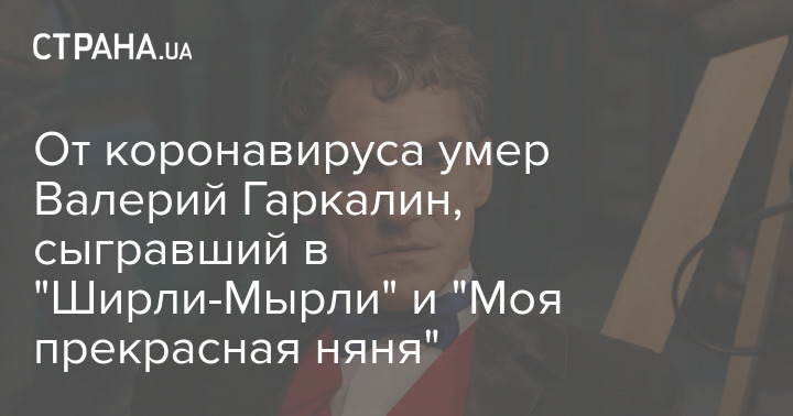 В России умер известный актер Валерий Гаркалин, который болел коронавирусом с начала октября. Об этом сообщил ректор ГИТИСа Григорий Заславский. "Мне сообщили, что Валерий Гаркалин, к сожалению, умер", - сообщил он СМИ.