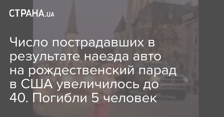 Увеличилось число погибших и пострадавших в результате наезда на рождественский парад в городе Уокеш (штат Висконсин, США). На данный момент сообщается о сорока пострадавших и пятерых погибших.