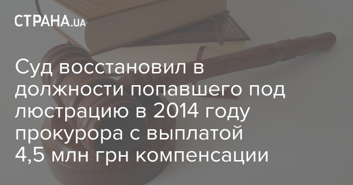 Суд восстановил в должности попавшего под люстрацию в 2014 году прокурора с выплатой 4,5 млн грн компенсации