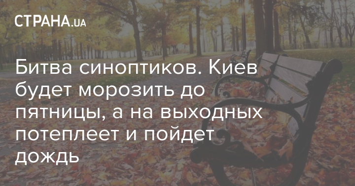"Страна" продолжает проект "Битва синоптиков" прогнозом погоды на неделю в Киеве. Мы собрали данные с 17 по 24 октября от шести ведущих метеосайтов страны. В конце недели мы сравним прогнозы с тем, что происходило на самом деле, чтобы назвать самый правдивый и самый недостоверный варианты.