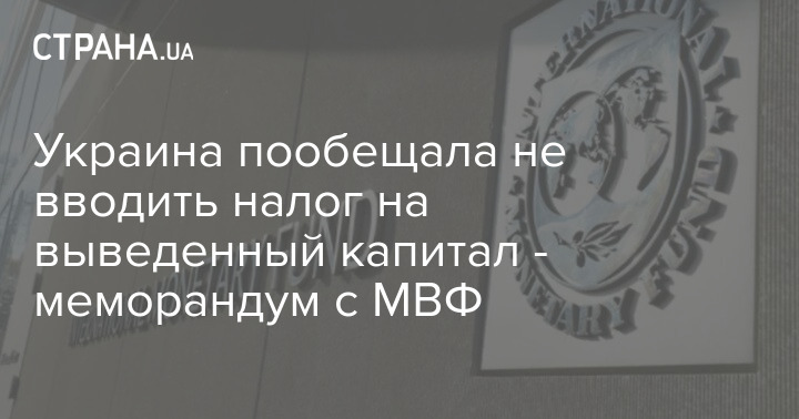 В Украине не будут заменять налог на прибыль налогом на выведенный капитал. Об этом говорится в меморандуме об экономической и финансовой политике, который украинские власти заключили с Международным валютным фондом.