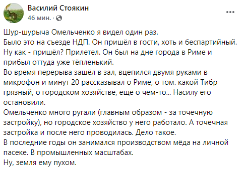 Ну, земля ему пухом", - написал Стоякин в Facebook.