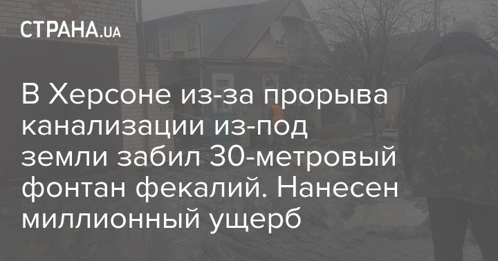 На прошедших выходных в Херсоне произошла авария на напорном канализационном трубопроводе, в результате из-под земли бил фонтан нечистот высоток 30 метров. Пострадали жилые дома.