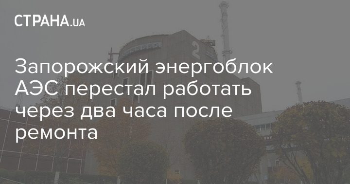 Запорожский энергоблок АЭС перестал работать через два часа после ремонта
